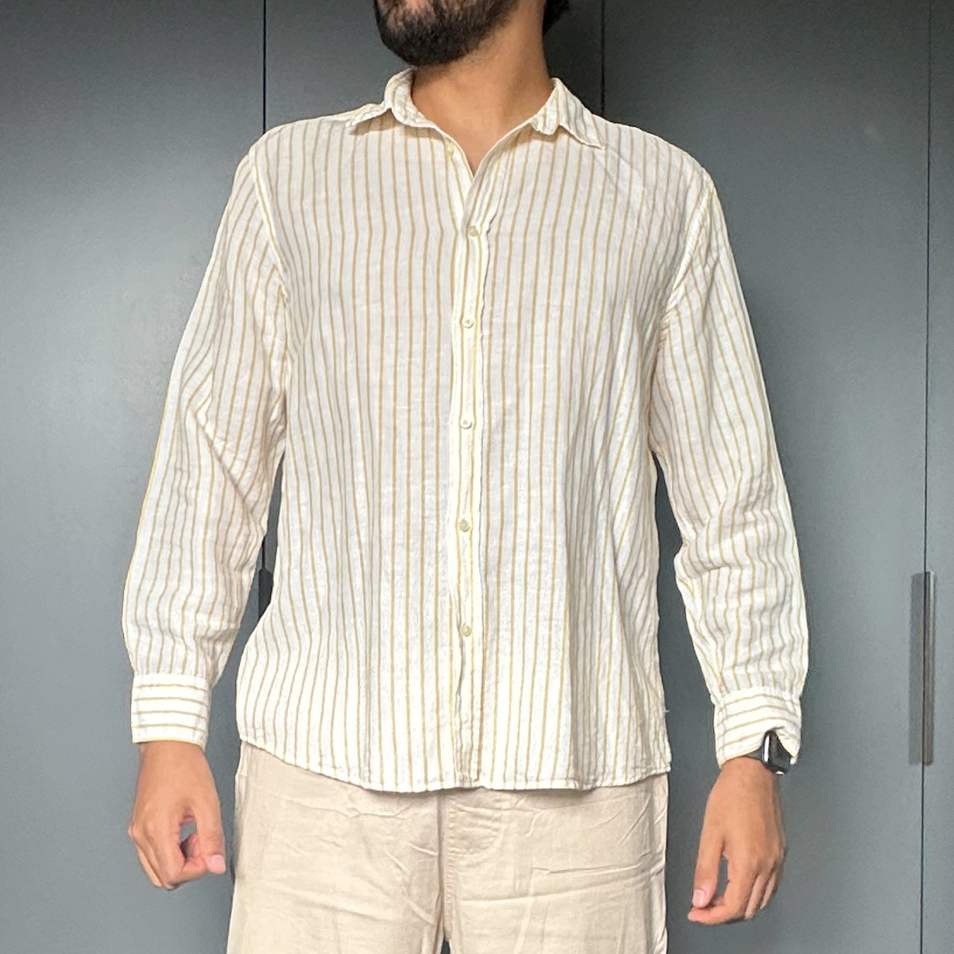 Camisa lsitrada de manga longa da Zara. Material linho.