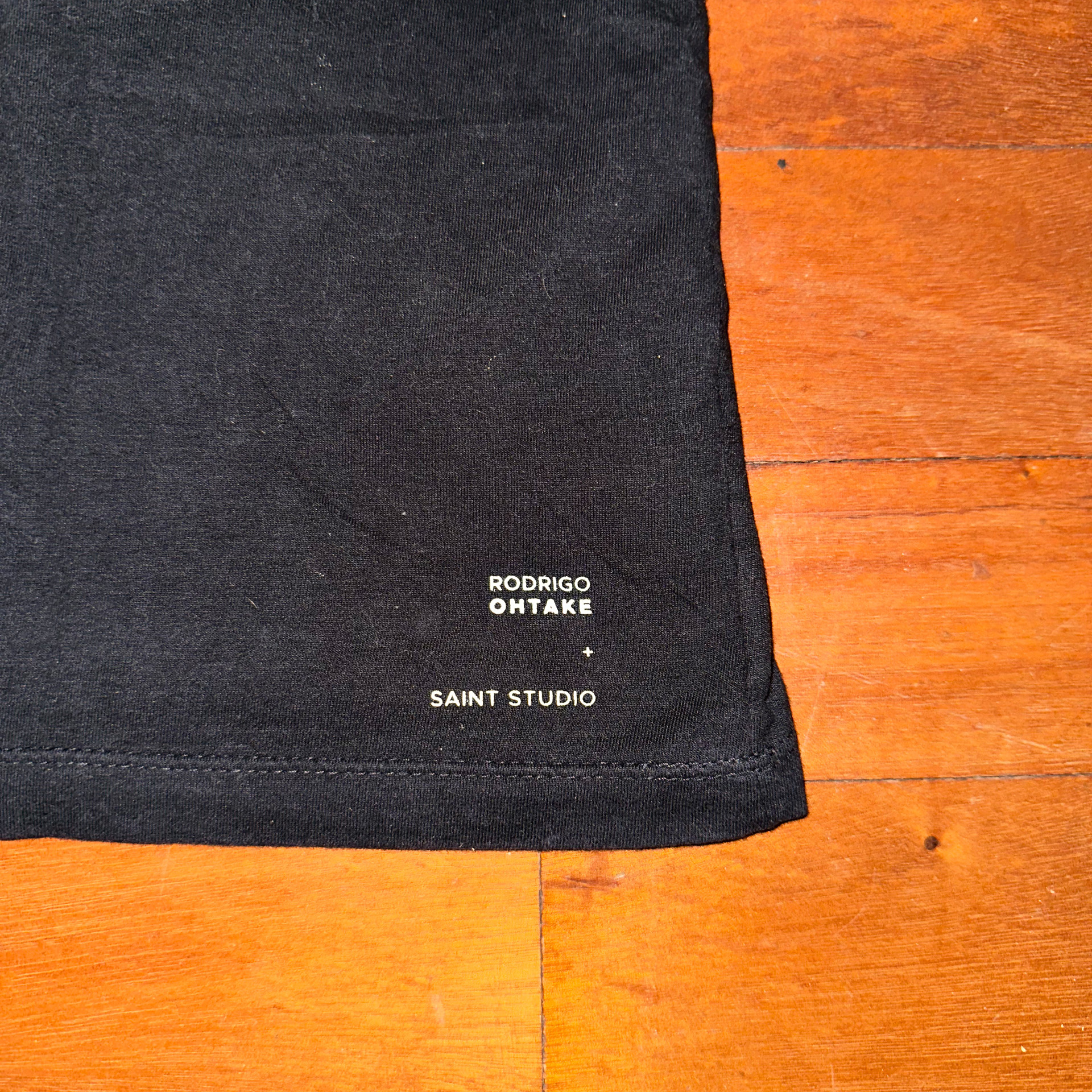Camiseta preta com estampa da colaboração Saint Studio + Rodrigo Ohtake. Material premium, 100% algodão, a marca tem um foco muito forte em qualidade.